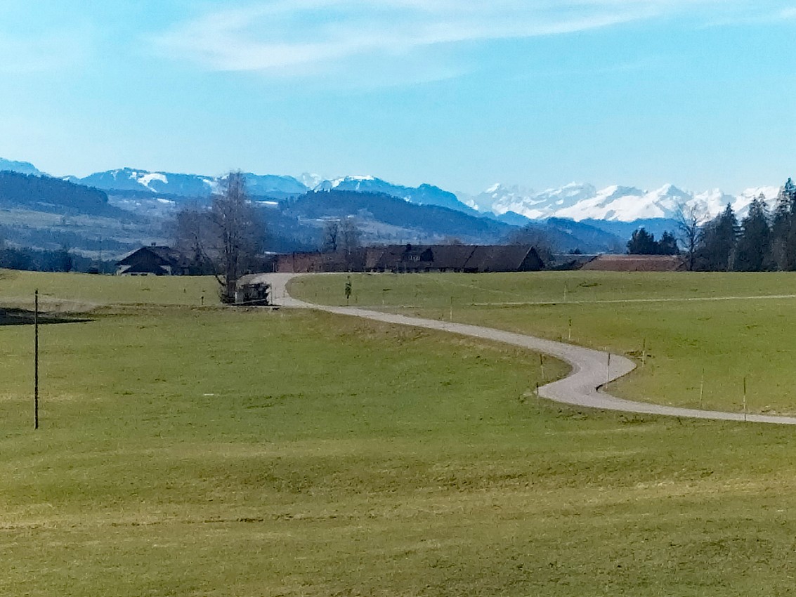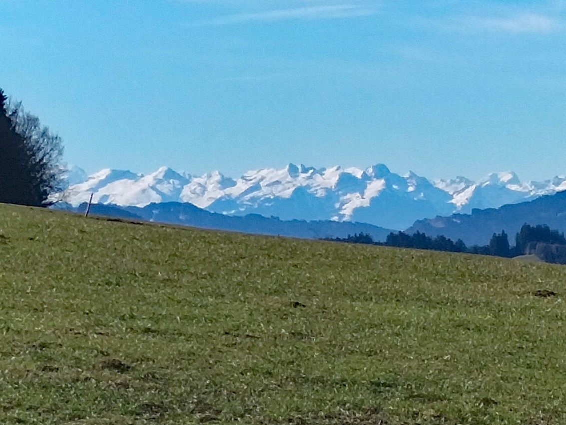 | Anforderungen: | Unschwierige Rundwanderung weitgehend auf schmalen Sträßchen mit grandiosem Alpenblick. Steiler Aufstieg Richtung Schweineburg. Nicht durchgehend markiert, Wanderkarte oder GPS nötig. |