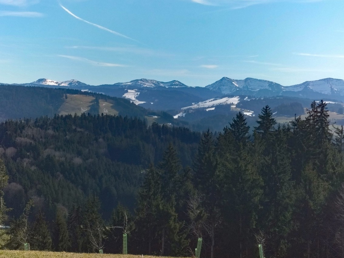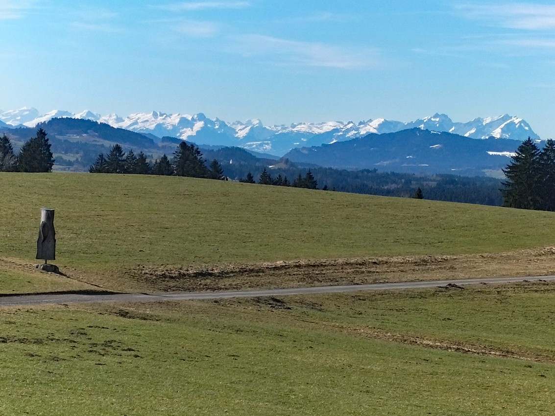 Das Waldbad von Isny ist der Ausgangspunkt einer Wanderung, die bei guter Sicht ein grandioses Bergpanorama bietet. Vom Säntis bis zum Tödi, von der Kanisfluh zur Damülser Mittagsspitze und auf die gesamte Nagelfluhkette reicht der Blick. Da kann man es auch leicht ertragen, dass der größte Teil der Wanderung auf schmalen, wenig befahrenen Sträßchen verläuft.