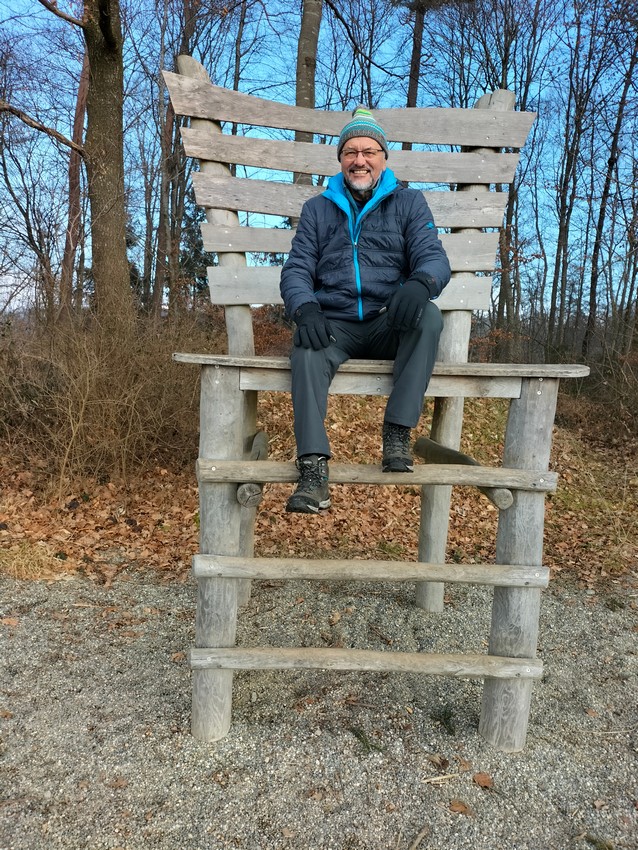 Nach einem kurzen Aufstieg überqueren wir die Straße und wandern durch den Wald Richtung Buchsee. Kurz vor dem Hof Buchsee biegen wir rechts ab (Ww.) und wandern vorbei am „großen Stuhl“ parallel zum See. In der Waldecke biegen wir links ab (Ww.) und kommen durch die Unterführund zum Häcklerweiher mit großem Parkplatz (hier Start b).