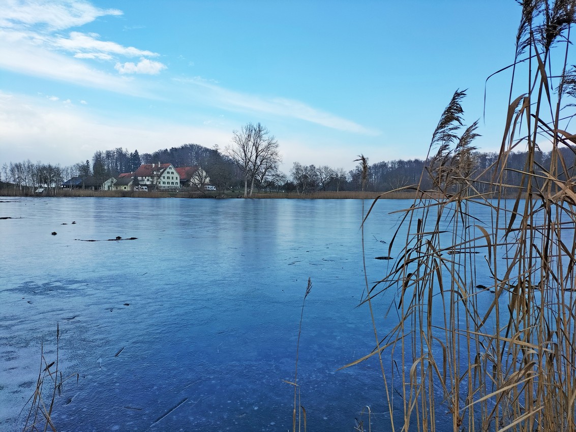 Auf der Sraße „Im Ried“ gehen wir durch die Felder bis zur Brücke, biegen davor rechts ab ond folgen dann dem (oft sumpfigen) Weg parallel zur Donau bis zur neuen Straßen-Querspange und weiter zum Donau-Kraftwerk. Hier werden Donau und Seezufluss überquert, dann biegen wir links ab und folgen immer dem Seeufer auf schönem Pfad. Wir überqueren den Wirtschaftsweg und gehen dann weiter am Seeufer bis eine schmale Brücke über die Donau leitet.  Die Markierungen bringen uns über die Bahnlinie in Richtung Riedmühle und zur Kreisstraße.