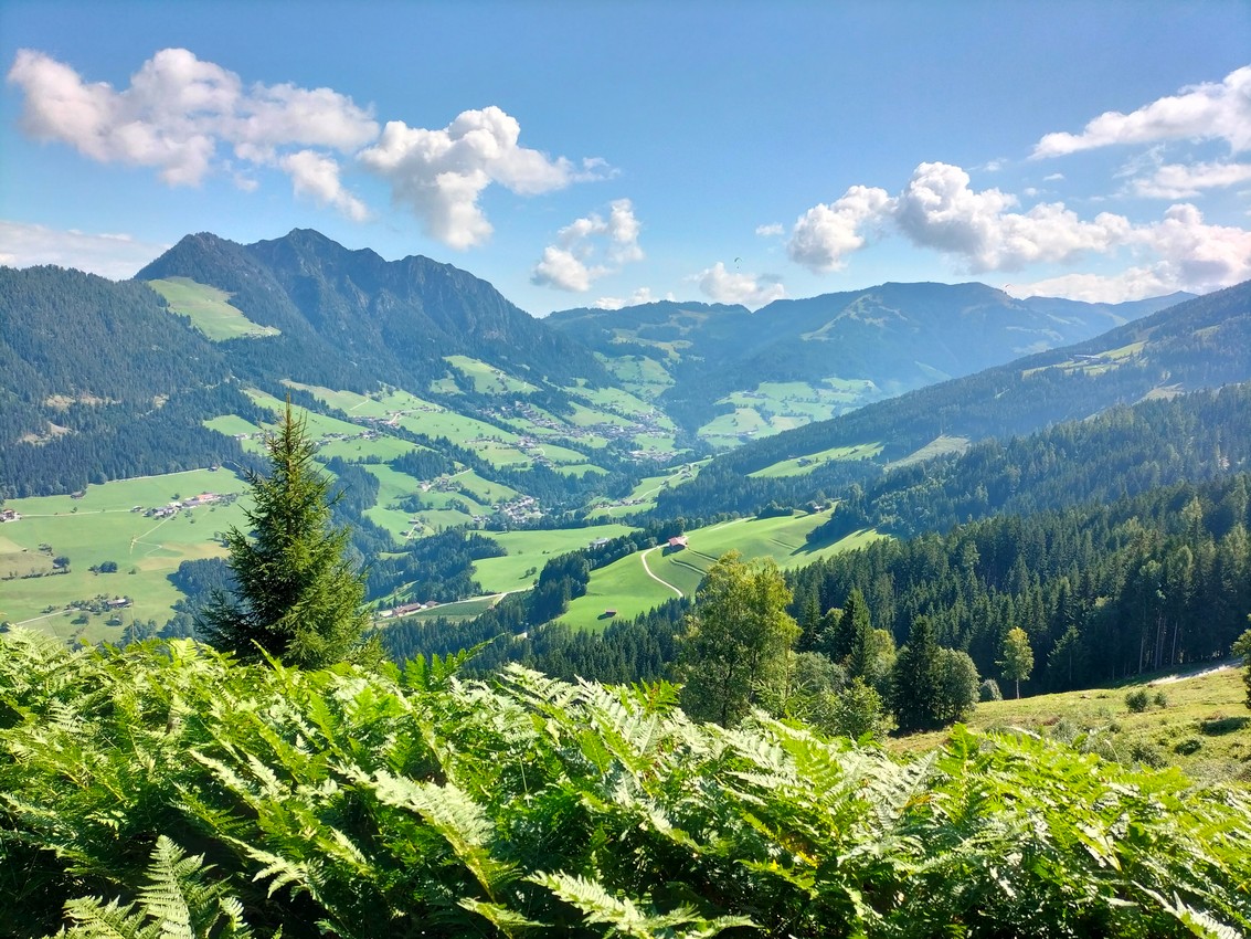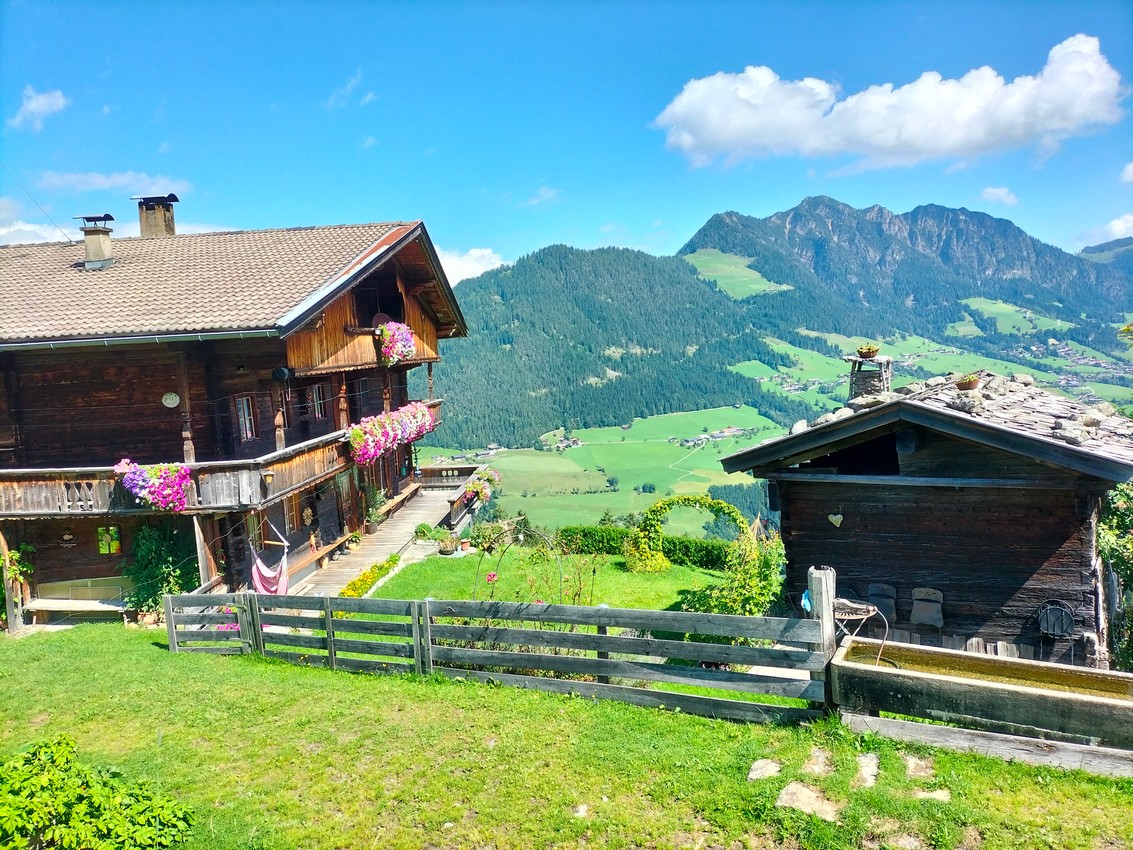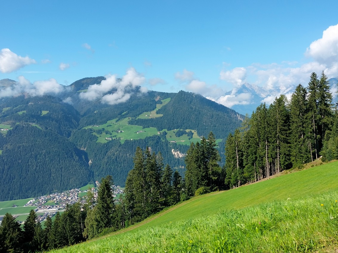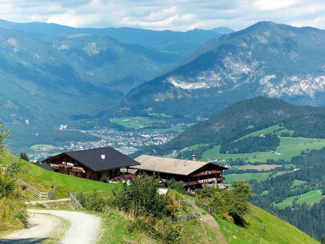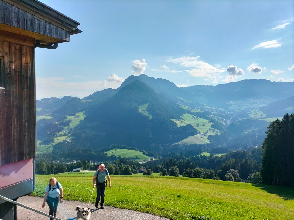 Für den Rückweg gehen wir zurück bis zur Hechenblaikenalm und biegen dort rechts ab. Wir bleiben immer auf dem Hauptweg und wandern in weiten Serpentinen vorbei an Bergbuernhöfen abwärts. Am Hof Zulehen zeigt der Wegweiser für Wanderer nach Links auf einen Grasweg, der am nächsten Hof in eine Sträßchen übergeht, das wieder hinauf zum Kerschbaumer Sattel führt. Von hier geht es auf dem schon bekannten Sträßchen hinauf zu Juppis Zauberwald und zurück zur Bergstation der Seilbahn.